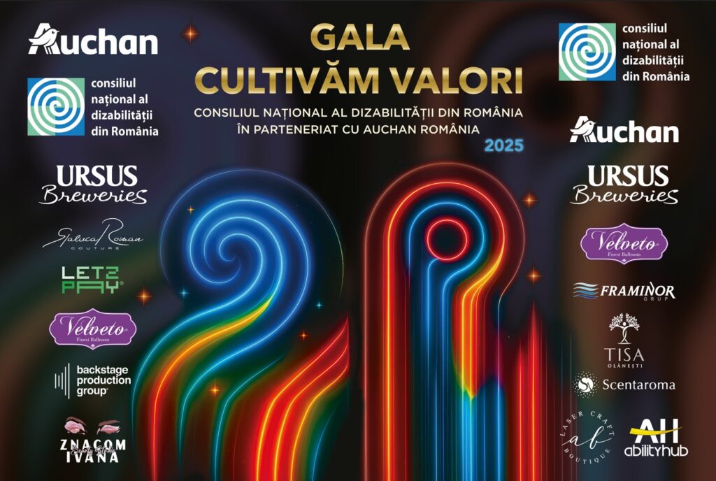 Gala Cultivăm Valori, ediția 2025, a fost organizată de Consiliul Național al Dizabilității din România, în parteneriat cu Auchan România și a fost posibilă datorită generozității sponsorilor: