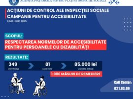 Agenția Națională pentru Plăți și Inspecție Socială (ANPIS), prin agențiile teritoriale, a desfășurat, în perioada 16 iunie – 31 iulie 2025, o campanie de control privind respectarea prevederilor legale referitoare la accesibilizarea mediului fizic, informațional și comunicațional pentru persoanele cu dizabilități. Acțiunea s-a derulat la nivel național, în baza Planului […]